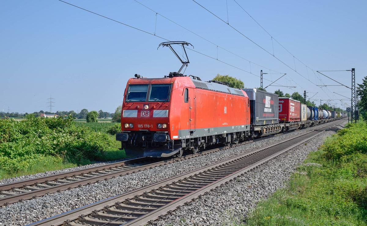 185 178 war am 30.06.2018 mit einem KV-Zug aus Köln nach Basel unterwegs, als sie ihrem Ziel mit dem durchfahren von Buggingen immer näher kam.