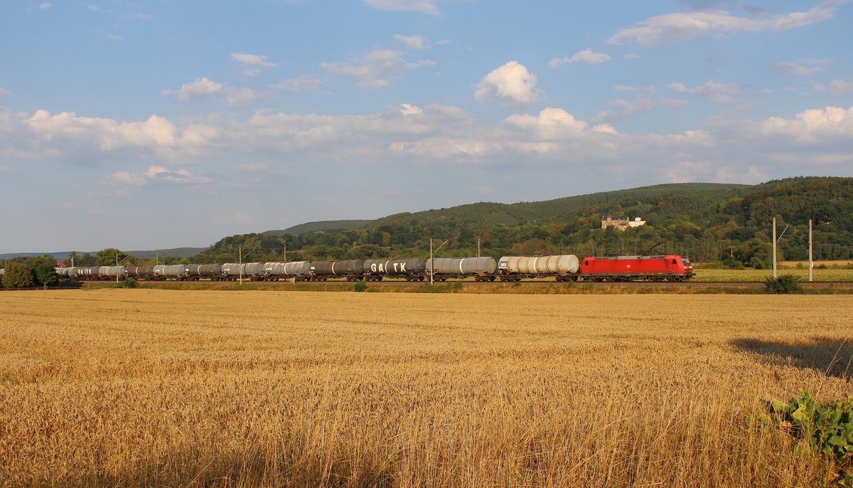 Captrain 193 783-8 mit einem Kesselzug und einem einzelnen 33 RIV 68 D-AAEC 5330 269-1 Eaos Güterwagen, unterwegs in Richtung Hamburg. 3km östlich von Büchen, 26.07.2018