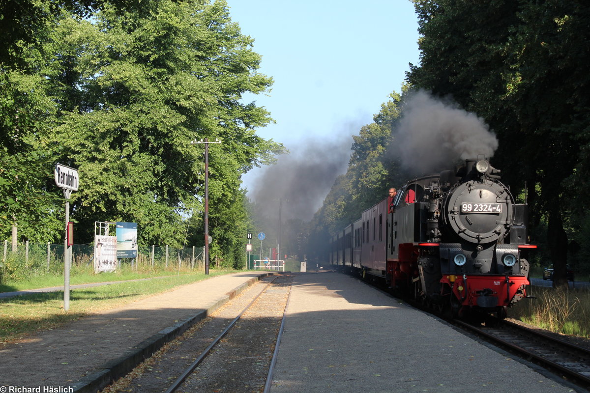 99 2324-4 zieht den ersten Zug des 28.07.2018 an der Rennbahn an mir vorbei.