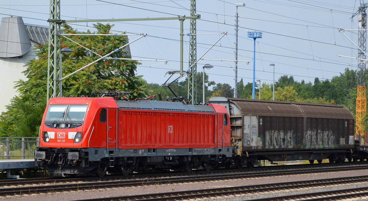DB Cargo Deutschland AG mit "187 137" [NVR-Number: 91 80 6187 137-5 D-DB] und gemischtem Güterzug am 20.07.18 Durchfahrt Magdeburg Hbf.