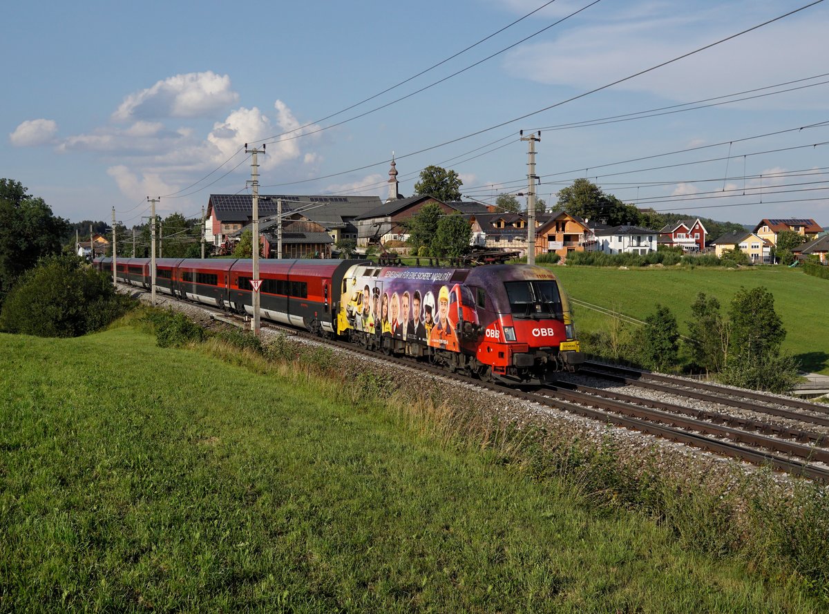 Die 1116 153 mit einem RJ nach Salzburg am 27.07.2018 unterwegs bei Weng.