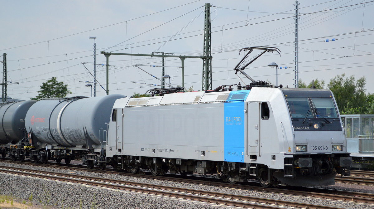 HSL Logistik GmbH mit der Rpool "185 691-3" [NVR-Number: 91 80 6185 691-3 D-Rpool] und Kesselwagenzug am 20.07.18 Durchfahrt Magdeburg Hbf.