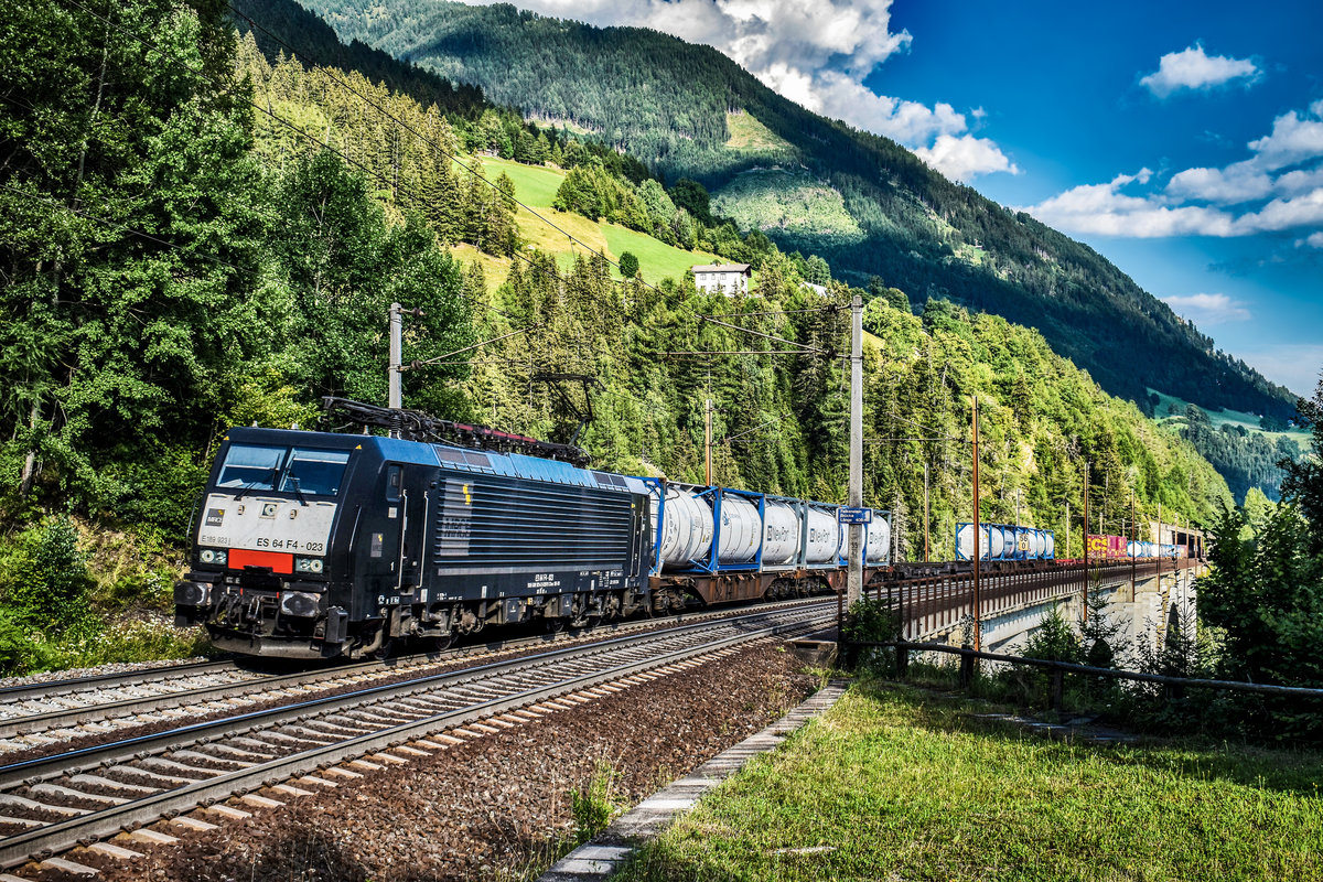 1016 034-1 fährt mit einem Güterzug bei Oberfalkenstein, die Tauernbahn-Südrampe hinunter.