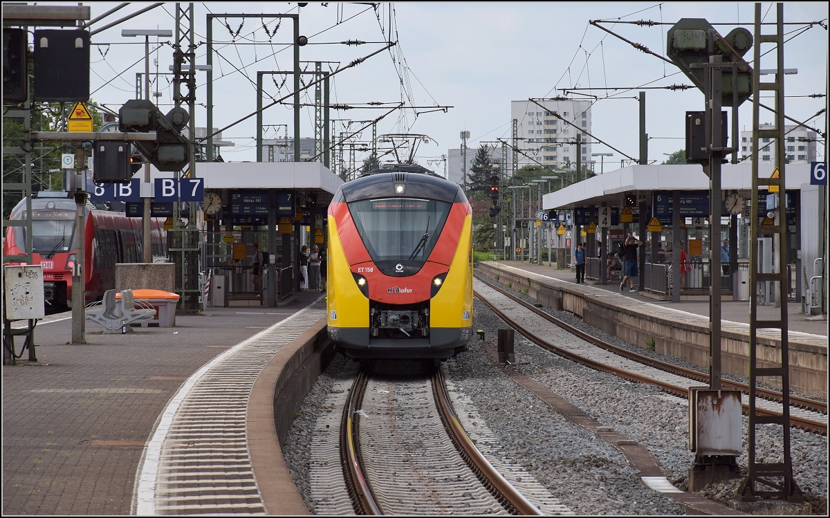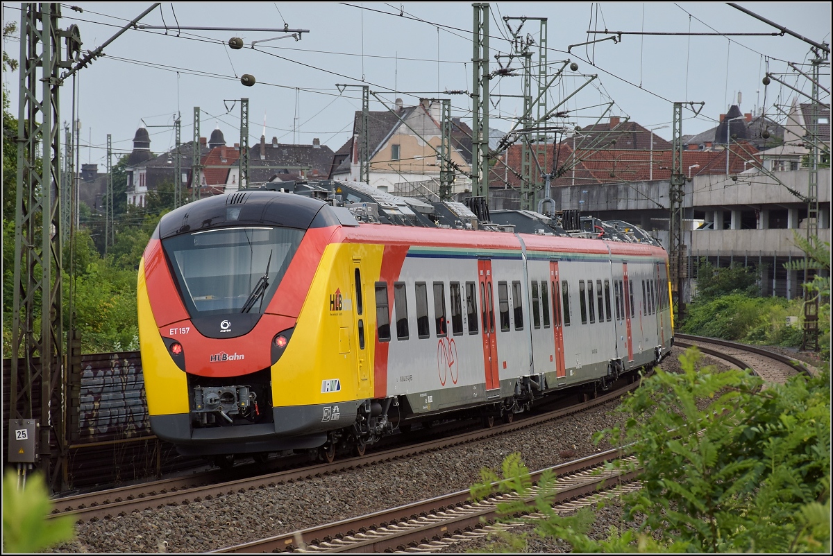 Vor der Nase rangierte ein neuer Coradia Continental der HLB. 1440 157-4 in Friedberg, Juli 2018.