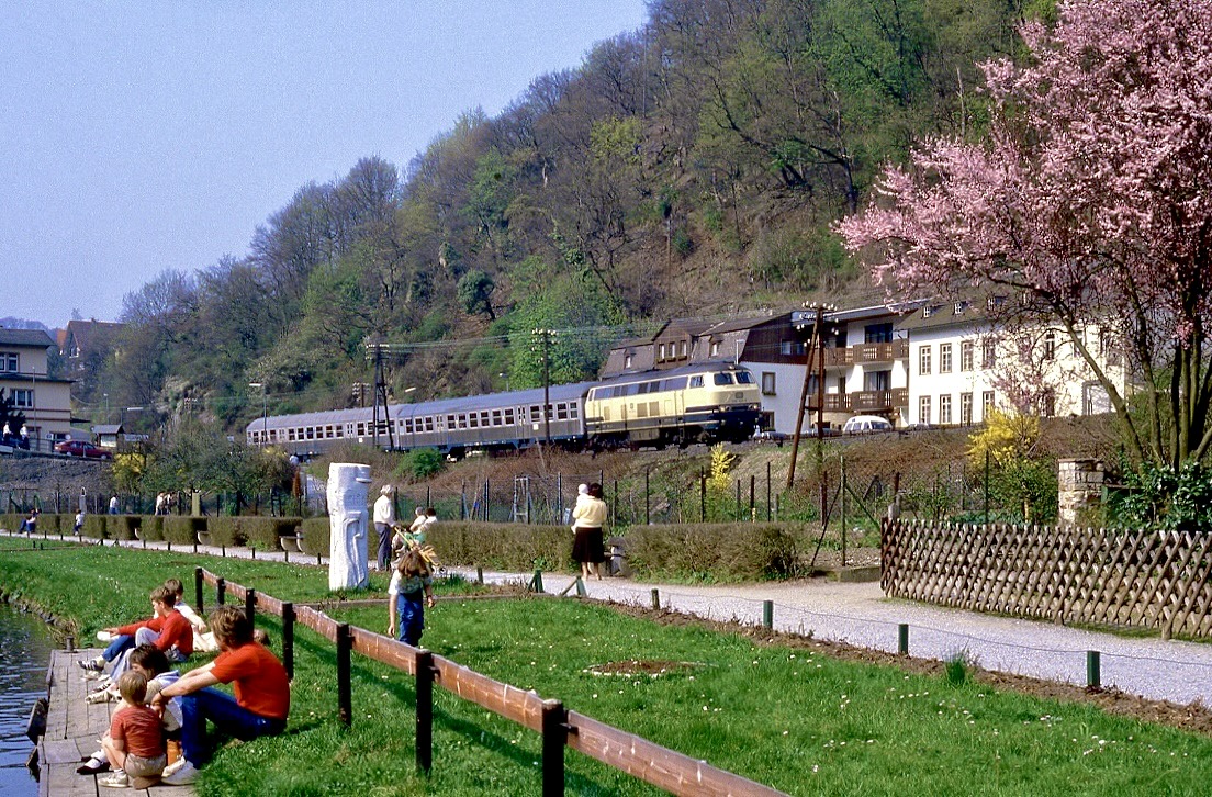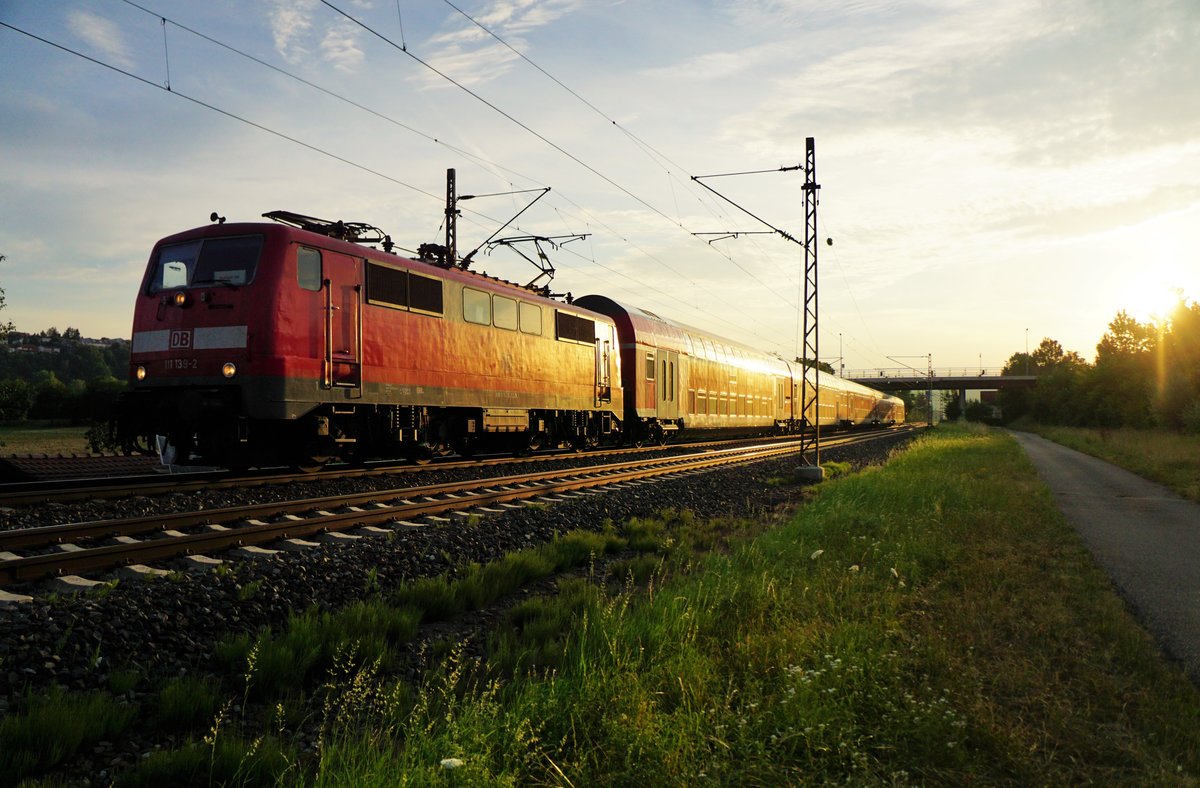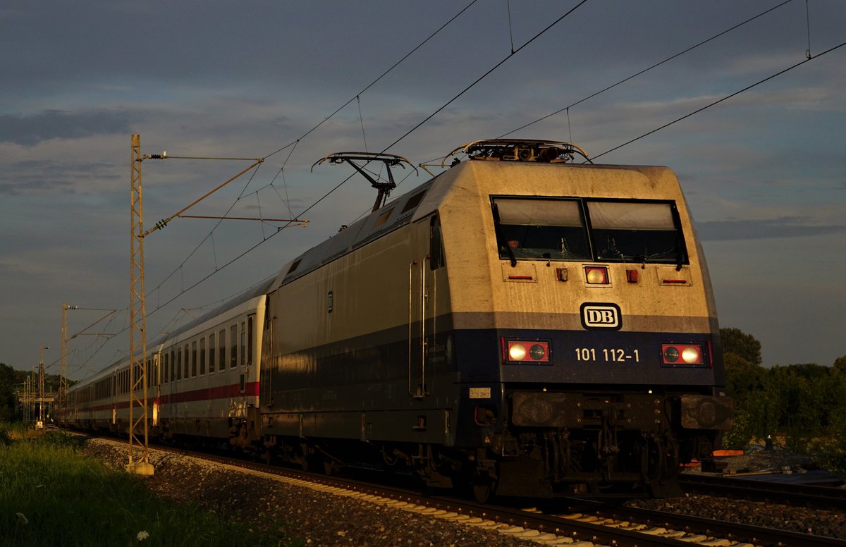 BR 101 112-1 "Rheingold" Werbelok ist kurz nach Sonnenaufgang (06.13 Uhr) mit dem IC "Loreley" von Tübingen nach Düsseldorf unterwegs.