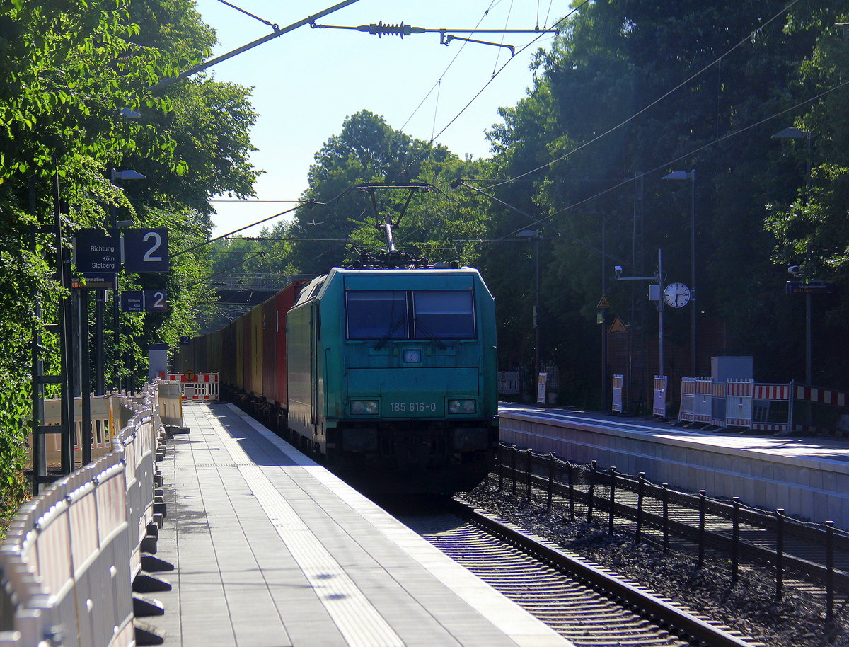 185 616-0 von Crossrail kommt mit einem MSC-Containerzug aus Antwerpen-Krommenhoek(B) nach Germersheim(D) und kommt aus Richtung Aachen-West,Aachen-Schanz,Aachen-Hbf,Aachen-Rothe-Erde und fährt durch Aachen-Eilendorf in Richtung Stolberg-Hbf(Rheinland)Eschweiler-Hbf,Langerwehe,Düren,Merzenich,Buir,Horrem,Kerpen-Köln-Ehrenfeld,Köln-West,Köln-Süd. Aufgenommen vom Bahnsteig 2 in Aachen-Eilendorf.