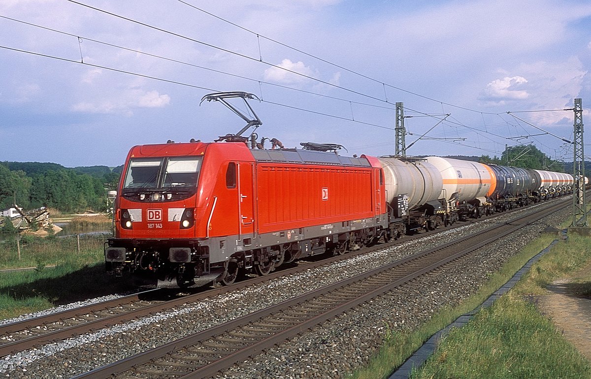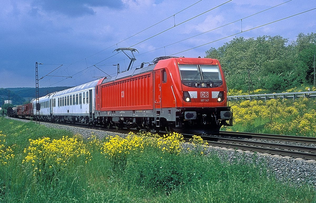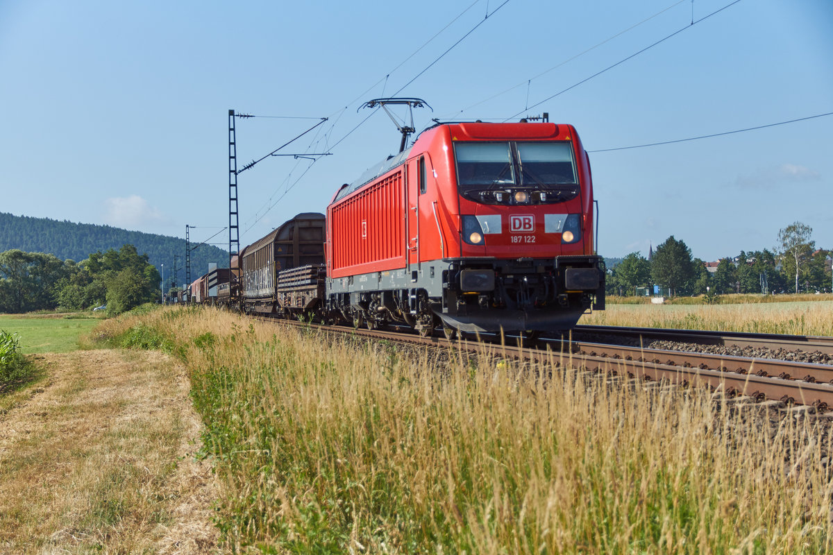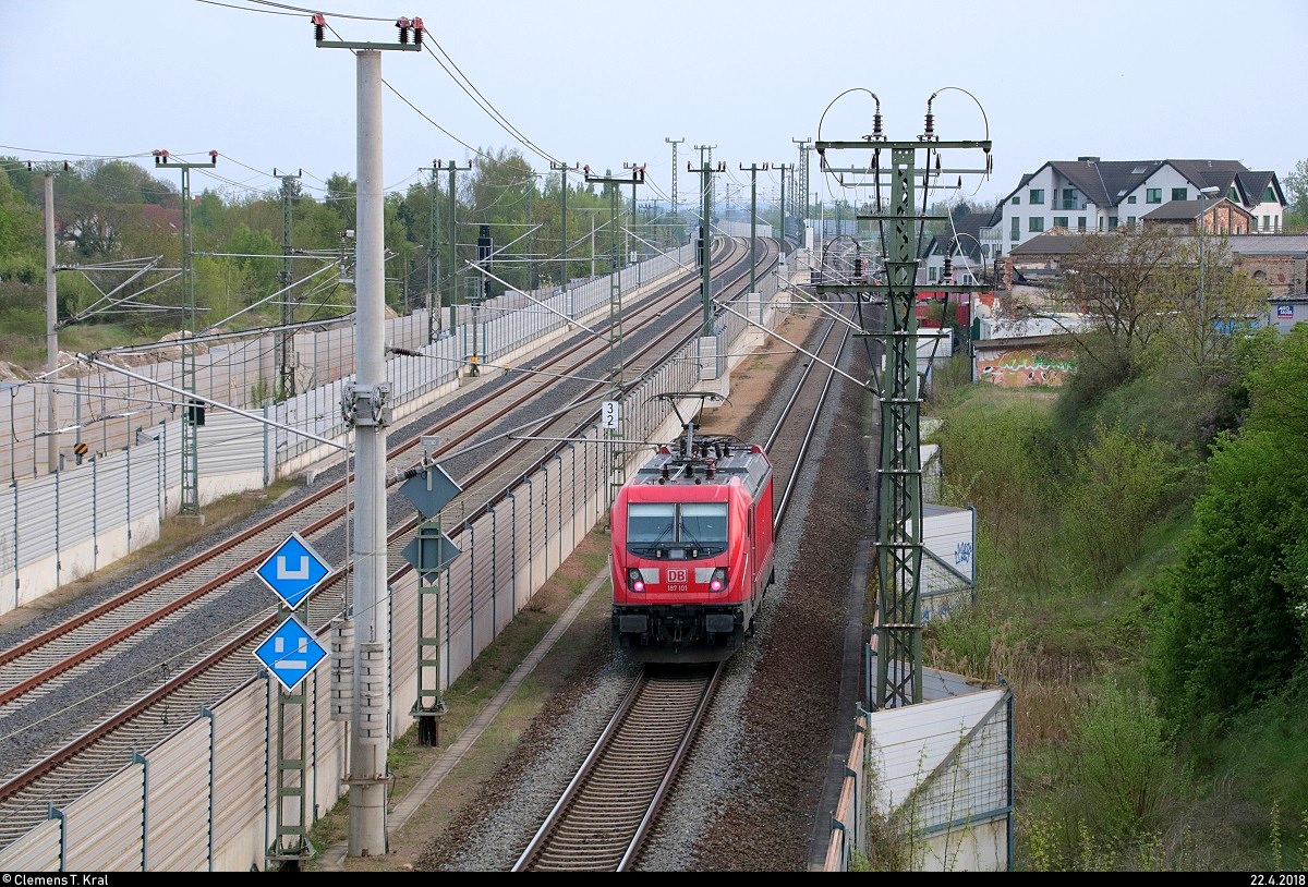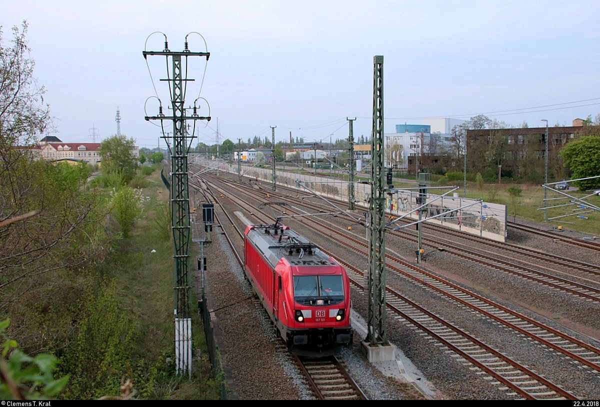 187 101 DB als Tfzf fährt in Halle-Ammendorf auf der Bahnstrecke Halle–Bebra (KBS 580) Richtung Großkorbetha. Aufgenommen von der Brücke Hohe Straße. [22.4.2018 | 18:31 Uhr]