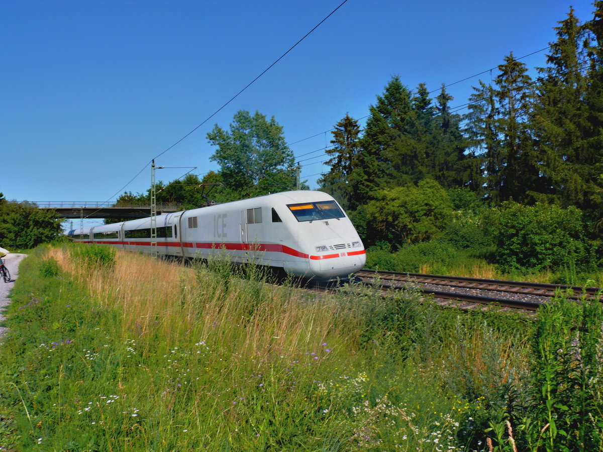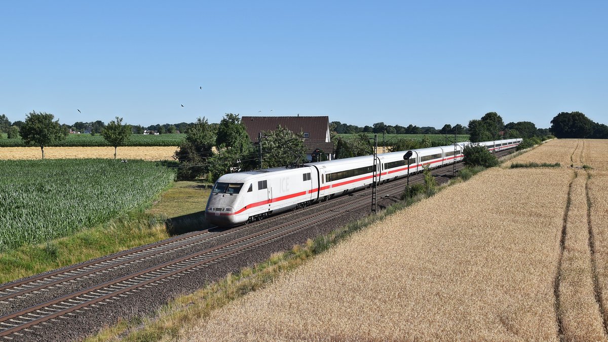 Weil wegen eines umfangreichen Böschungsbrandes zwischen Usti nad Labem (Aussig) und Lovosice in Tschechien der EC174 ab Dresden ersatzlos ausfiel, musste der ICE 1510 zwischen Berlin und Hamburg die Halte des EuroCity mit bedienen. Hier passiert er mit Verspätung meine Fotostelle im Sachsenwald zwischen Schwarzenbek und Friedrichsruh; 04.07.2018 - der Böschungsbrand hatte für mehrere Stunden den internationalen Bahnverkehr für Personenzüge zwischen Prag und Hamburg sowie Güterzüge lahmgelegt. Zur Bekämpfung waren 150 Feuerwehrleute im Einsatz.