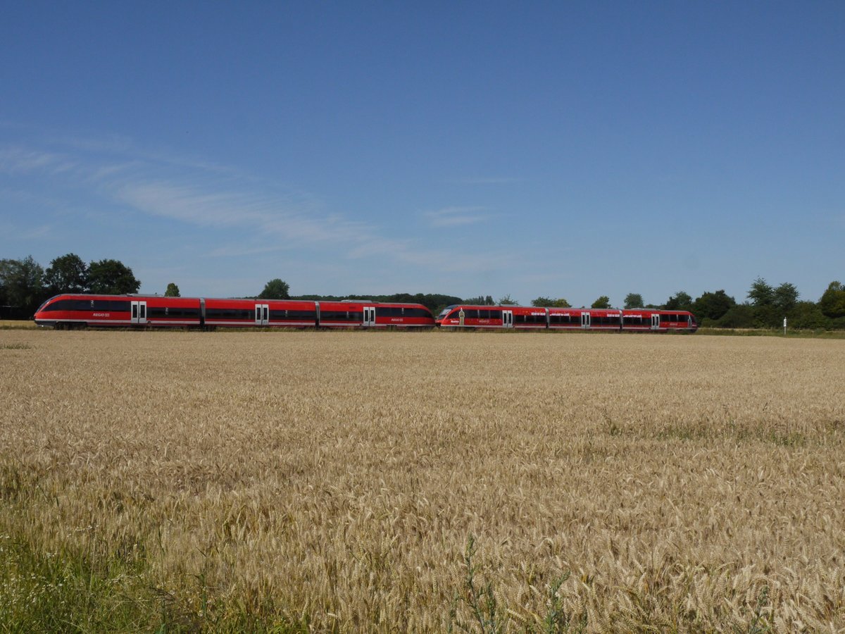 Mit den letzten Batteriereserven in der Kamera konnte ich,am 25.Juni 2018,den RE nach Stralsund,in Demmin fotografieren,danach war der Akku leer.
