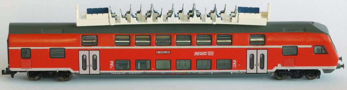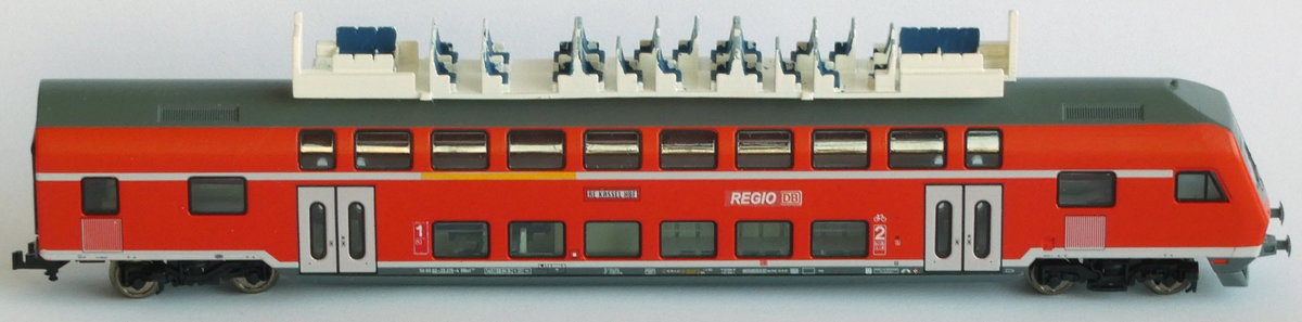 Der neulich zum DABpbzfa 761 frisierte Fleischmann-Steuerwagen hat nun seine passende Inneneinrichtung erhalten. Zustand vom 20.06.2018, Nacharbeiten sind noch nötig.