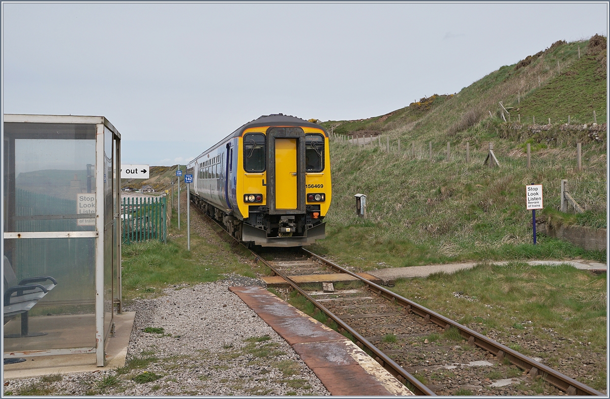 Ein Mini-Bahnhof an der Cumbrian Coast Line: Nethertwon. Von den etwa stündlich verkehrenden Zügen halten hier nur vier Zugspaare pro Tag, so zum Beispiel auch der sich hier nähernden Northern Class 156 mit der Nummer 156 469, auf dem Weg nach Barrow.