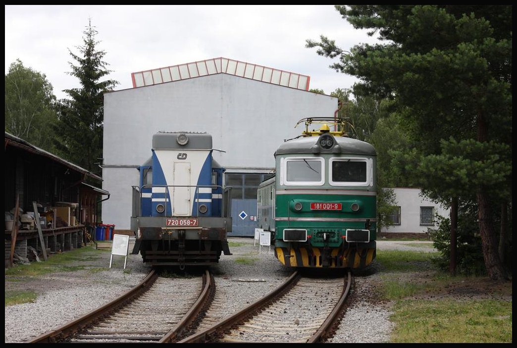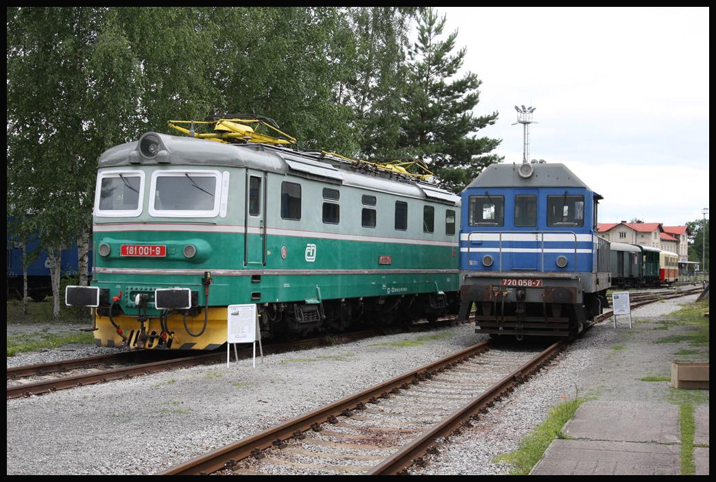 Eisenbahn Museum Luzna u Rakovnika am 22.06.2018: E-Lok 181001 neben Diesellok 720058
