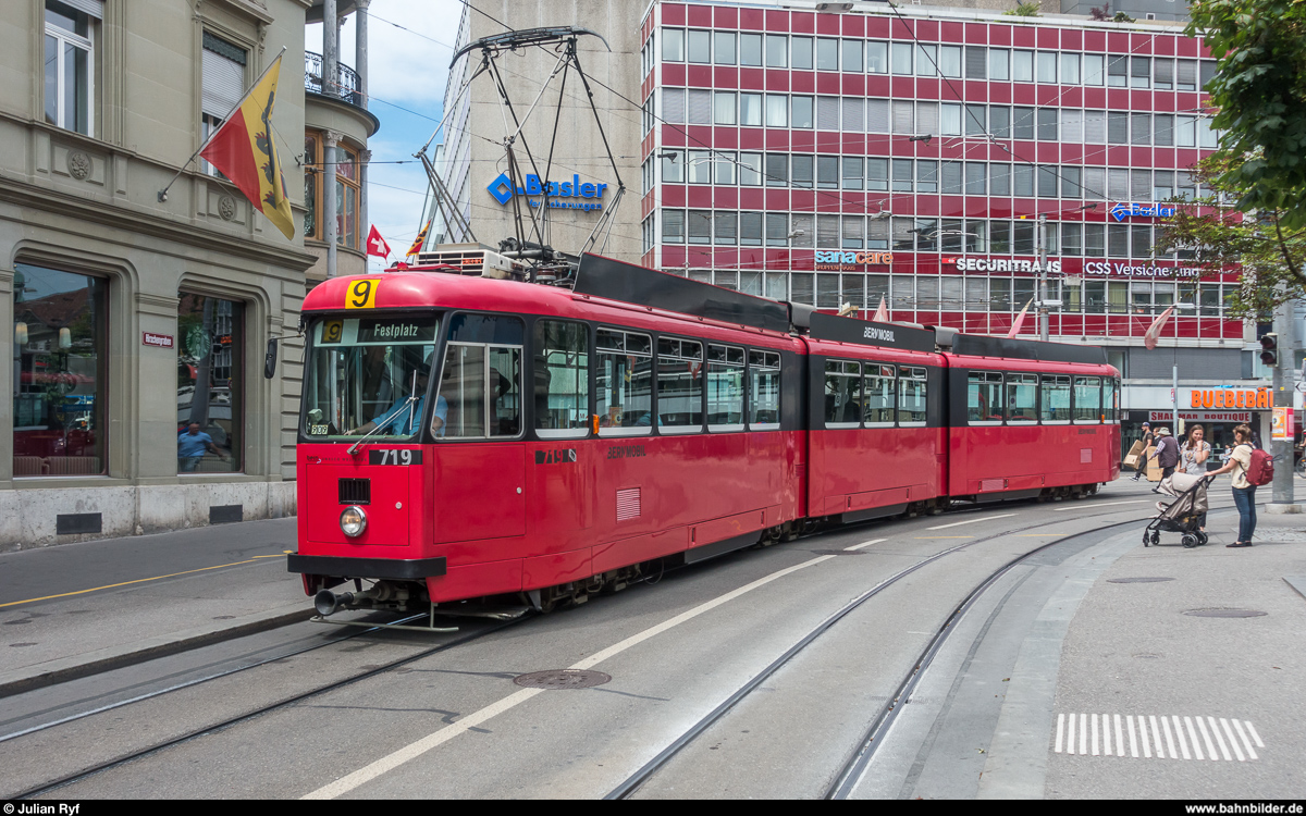 Doppeltraktion, mit dem Be 4/4 495, dem B4S 1469 und dem Be 4/4 501, auf der Linie 6, fahren zur Haltestelle Morgartenring. Die Aufnahme stammt vom 26.06.2018.