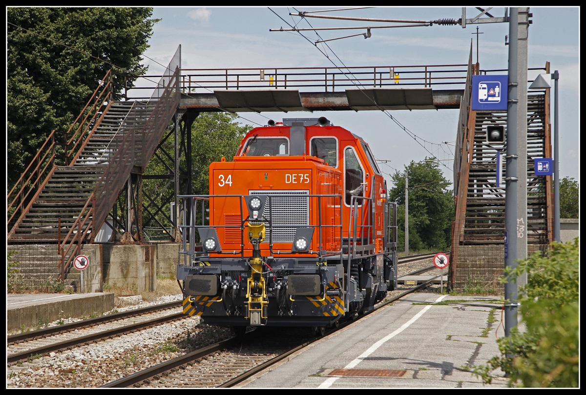 Gmeinder - Lok DE75 als Probelokzug in Jedenspeigen am 4.07.2018.