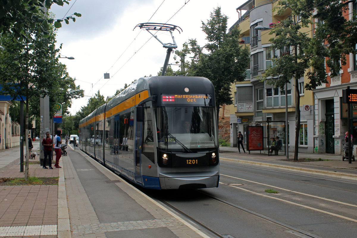 Leipzig LVB SL 11 (NGT12 (LVB-Typ 38) 1201) Bornaische Straße / Klemmstraße (Hst. S-Bf Connewitz) am 25. Juli 2017.