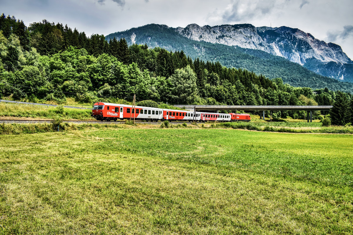 5022 fährt als S4 4808 (Hermagor - Villach), aus dem Bahnhof Görtschach-Förolach aus.