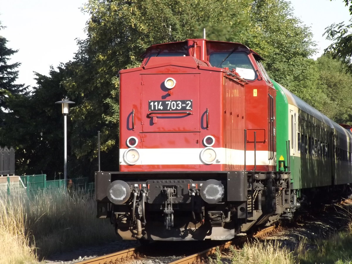 112 565-7 startet gerade den Motor führ ihr fahrt als RB 81 nach Pockau-Lengefeld. Dieser Zug bestande aus 112 565-7, 2 Bom´s und 114 703-2.