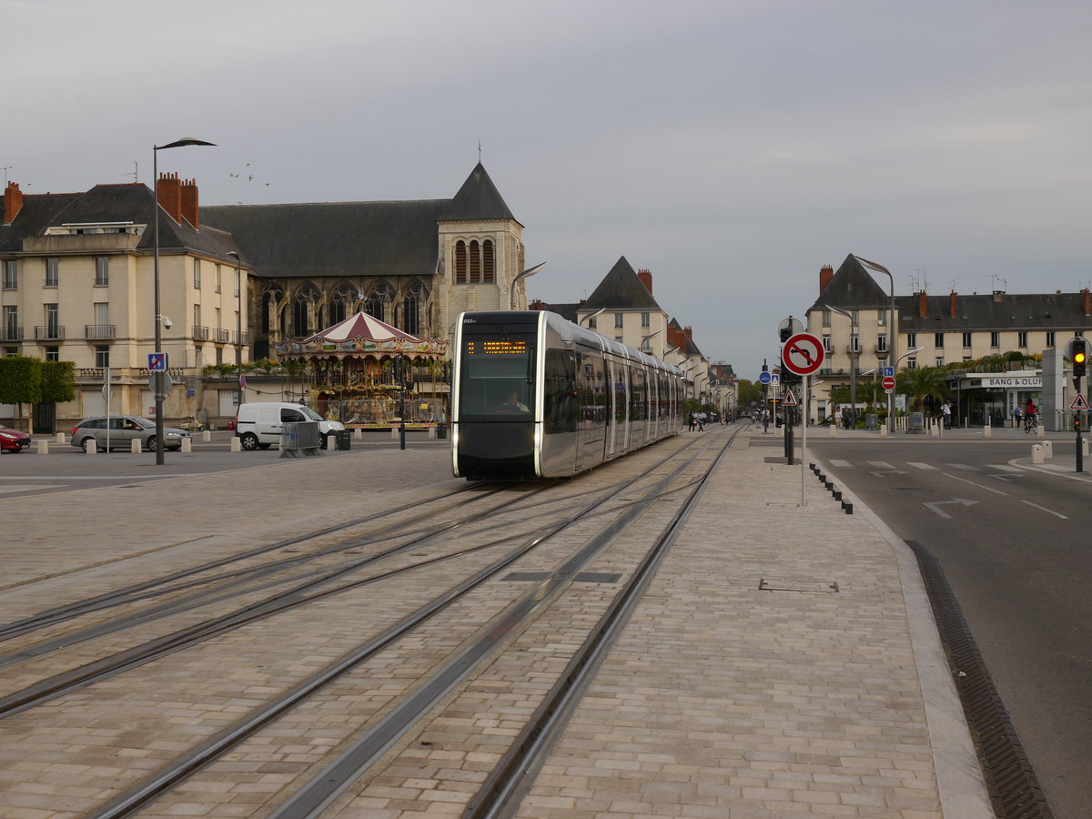 Tram FilBleu-052 unterwegs Richtung Loirebrücke Pont-Wilson.