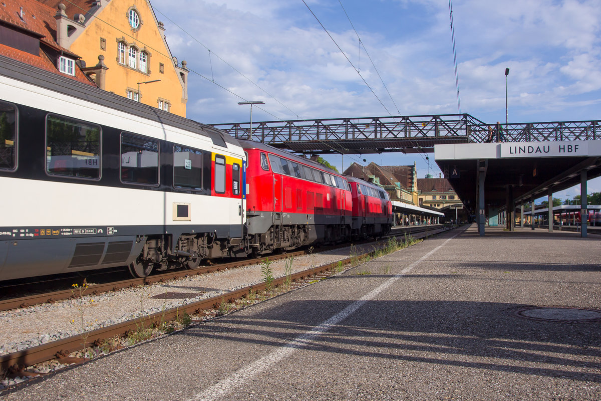 218 426-5 erreicht mit 218 452-1 und dem EuroCity Lindau Hbf. 10.6.18