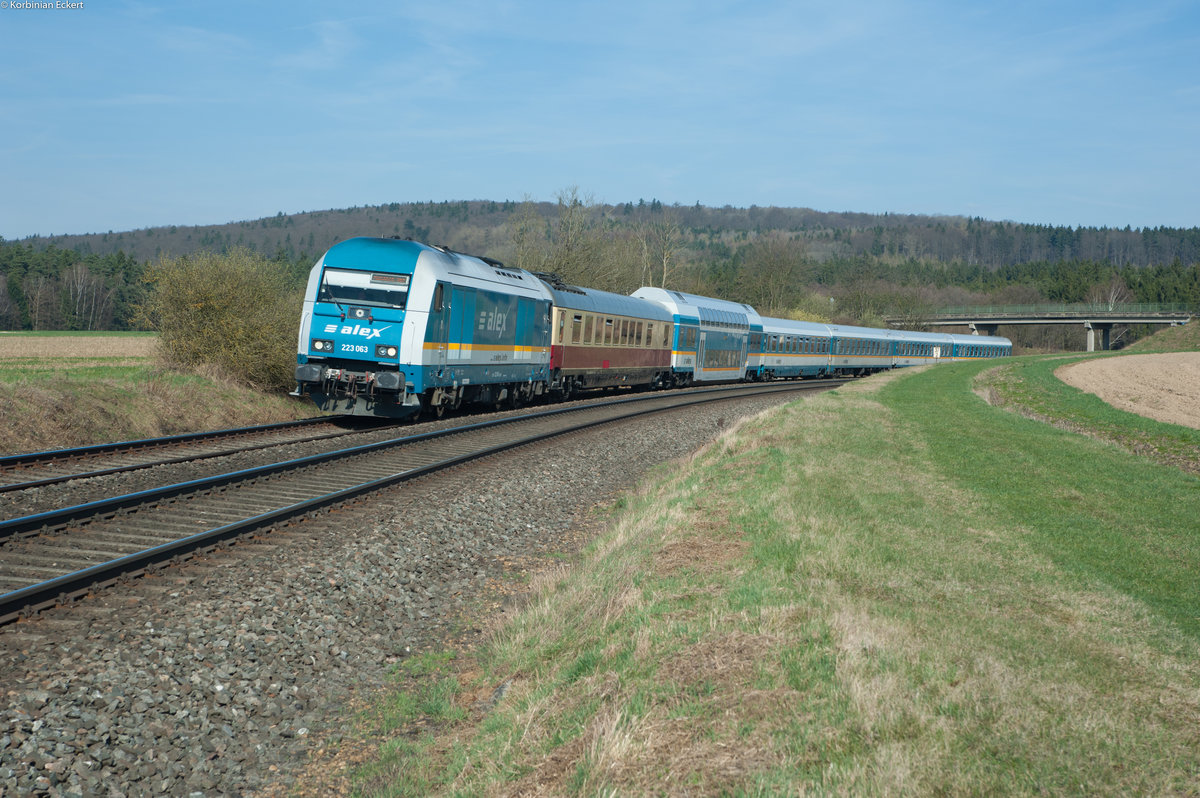 223 063 als ALX 84111 von Hof Hbf nach München Hbf bei Oberteich, 01.04.2017