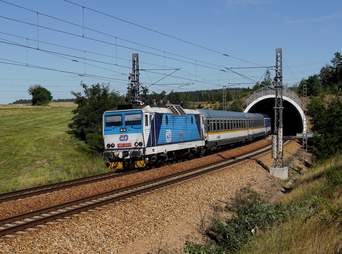 Die 362 120 mit einem ALX nach München am 30.06.2018 unterwegs bei Újezd.