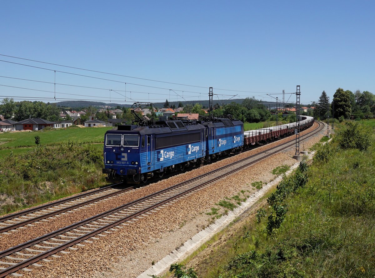 Die 363 507 und die 363 516 mit einem Güterzug am 30.06.2018 unterwegs bei Mýto.