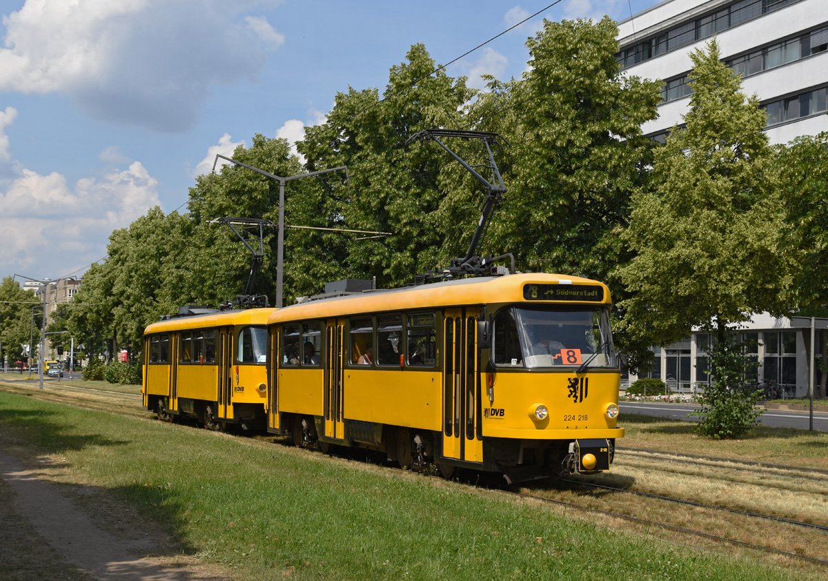 Tatra T4D 214 218 + 244 034 als Linie 8 in der Albertstraße, 08.06.2018