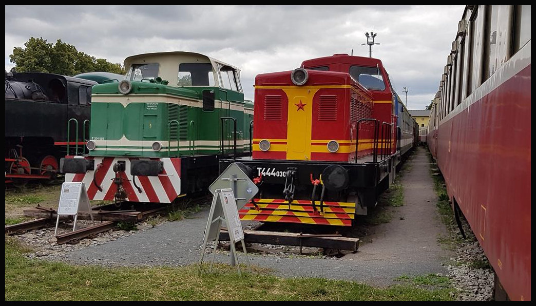 Eisenbahn Museum Luzna u Rakovnika am 22.06.2018: Diesel Rangierlok T 334085 neben T 444030
