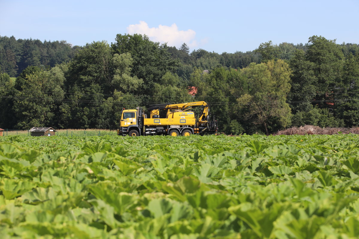 Am heutigen 5.Juli 2018 tut der Lkw seinen Dienst um das Unkraut das dem Bahnkörper erhebliche Schäden zu führt zu vernichten.
