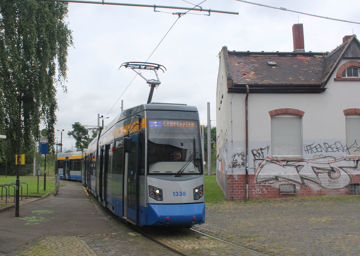 Leipzig LVB SL 4 (LFB NGTW6 (LVB-Typ 37A) 1338) Gohlis, Landsberger Straße am 25. Juli 2017.
