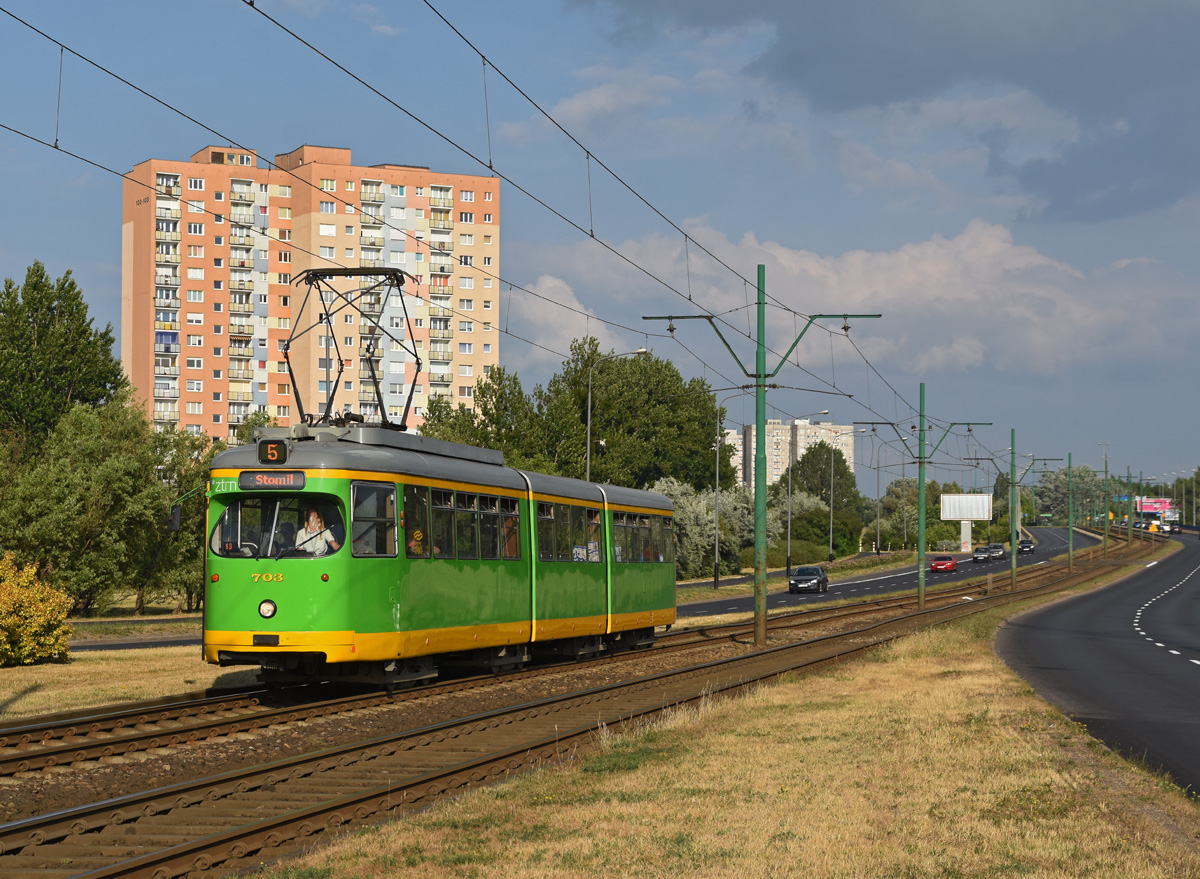 Düwag GT8 703 (Ex Düsseldorf 2671) als Linie 6, Rondo Starołęka, 05.06.2018