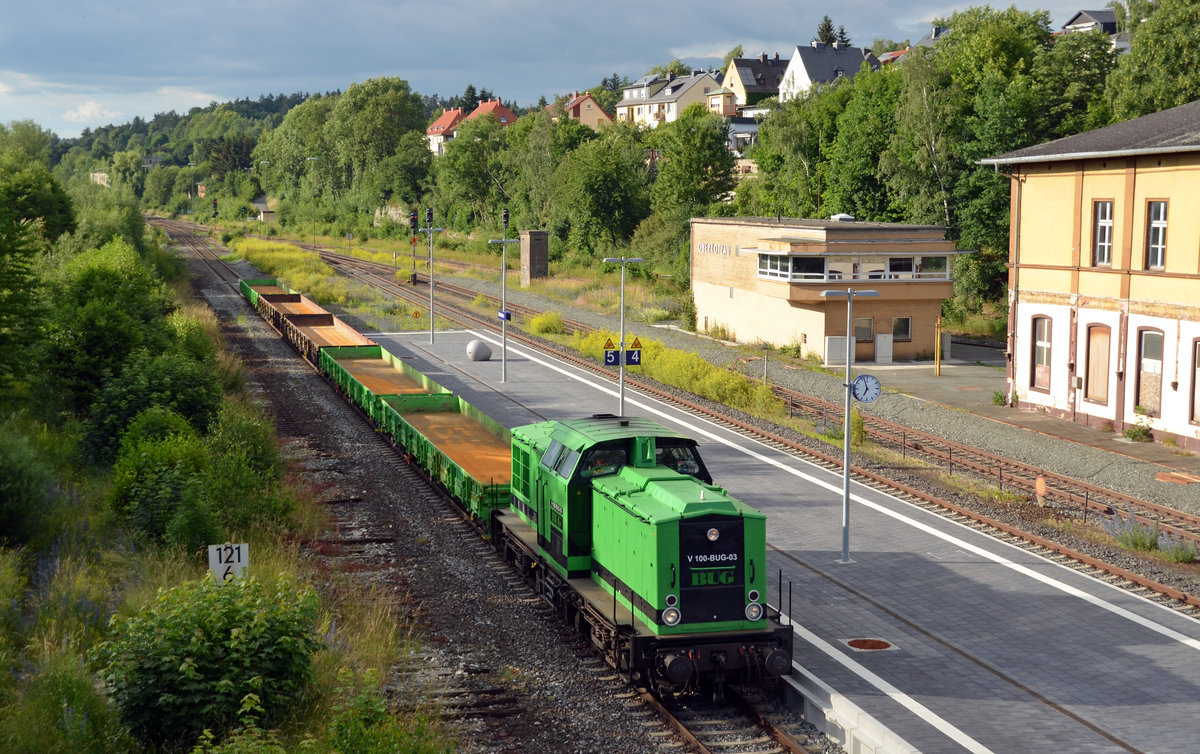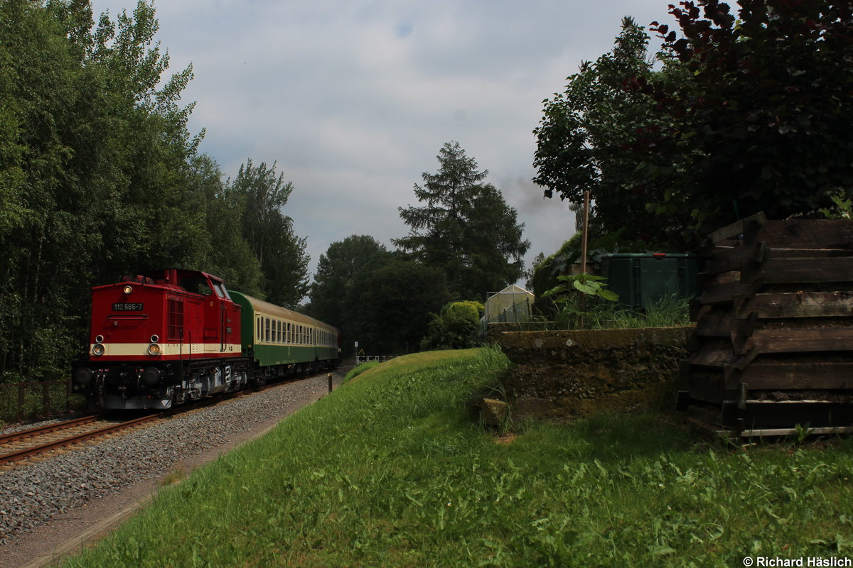 112 565-7 bremst ihren Zug gerade in ihren Endbahnhof Pockau-Lengefeld hinein.