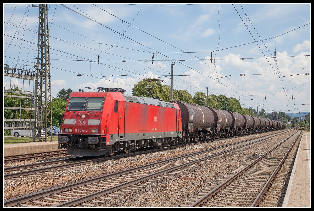 DB Cargo mit "187 138" [NVR-Number: 91 80 6187 138-3 D-DB] mit 185 169-0 und gemischten Kesselwagenzug am Haken am 04.07.18 Bf. Flughafen Berlin-Schönefeld.