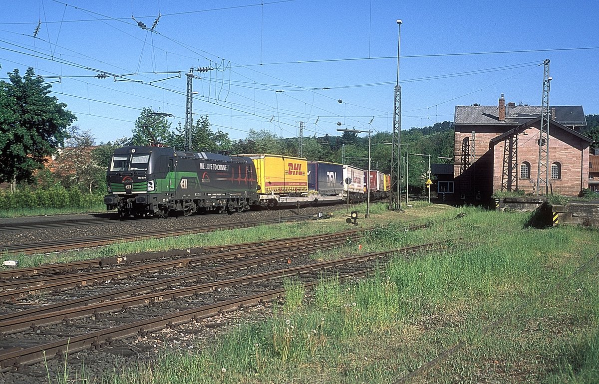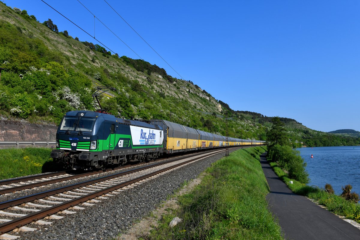 Am 04. Mai 2018 stand das Maintal noch in schönster Frühlingsblüte. Am späteren Nachmittag konnte ich bei Gambach den für die Rurtalbahn fahrenden ELL Vectron 193 230 mit einem ARS-Autotransport dokumentieren.