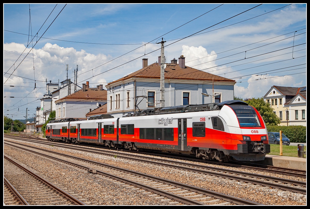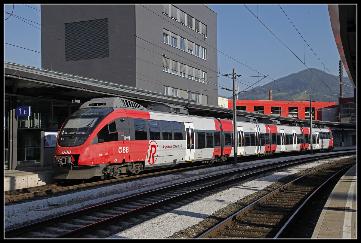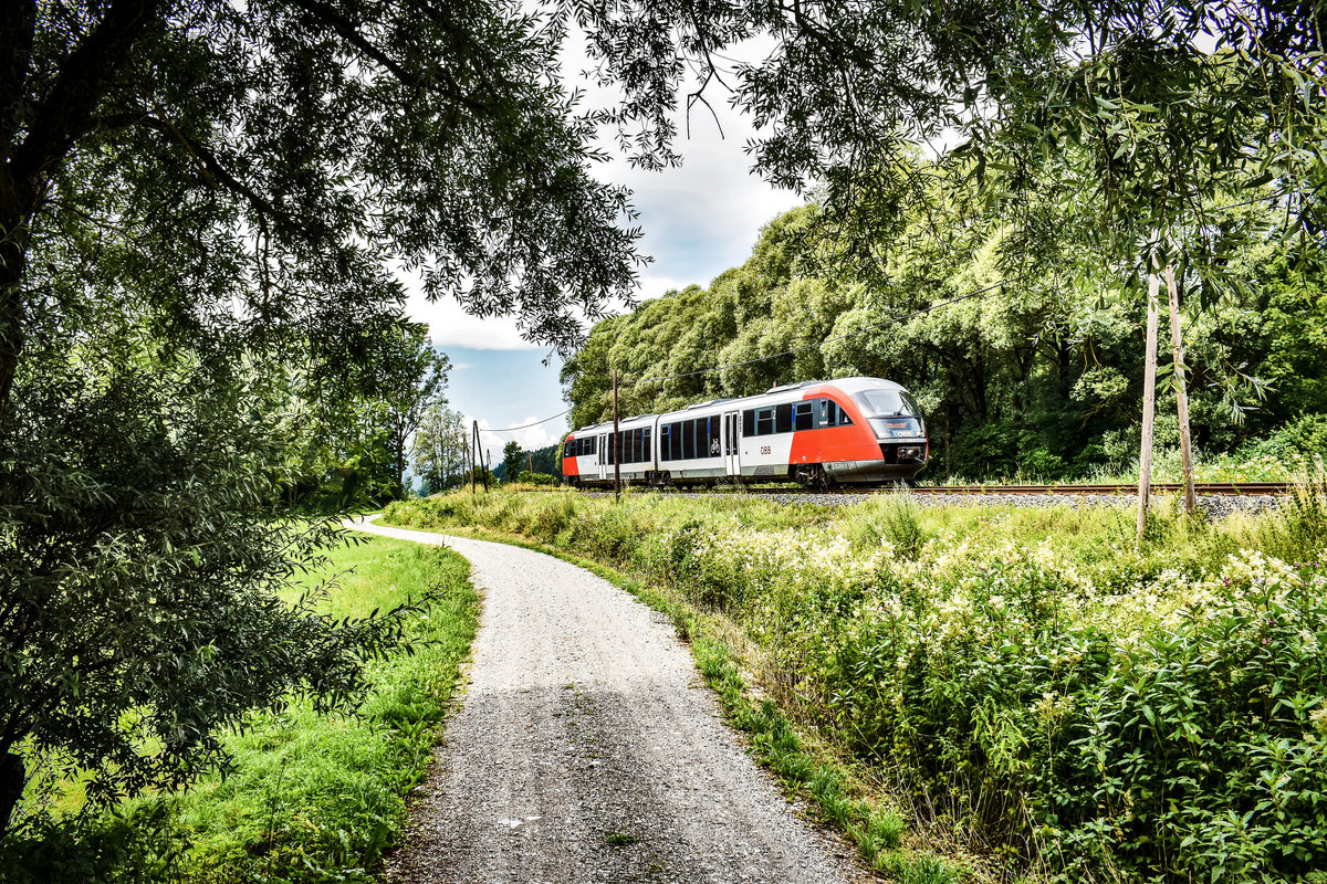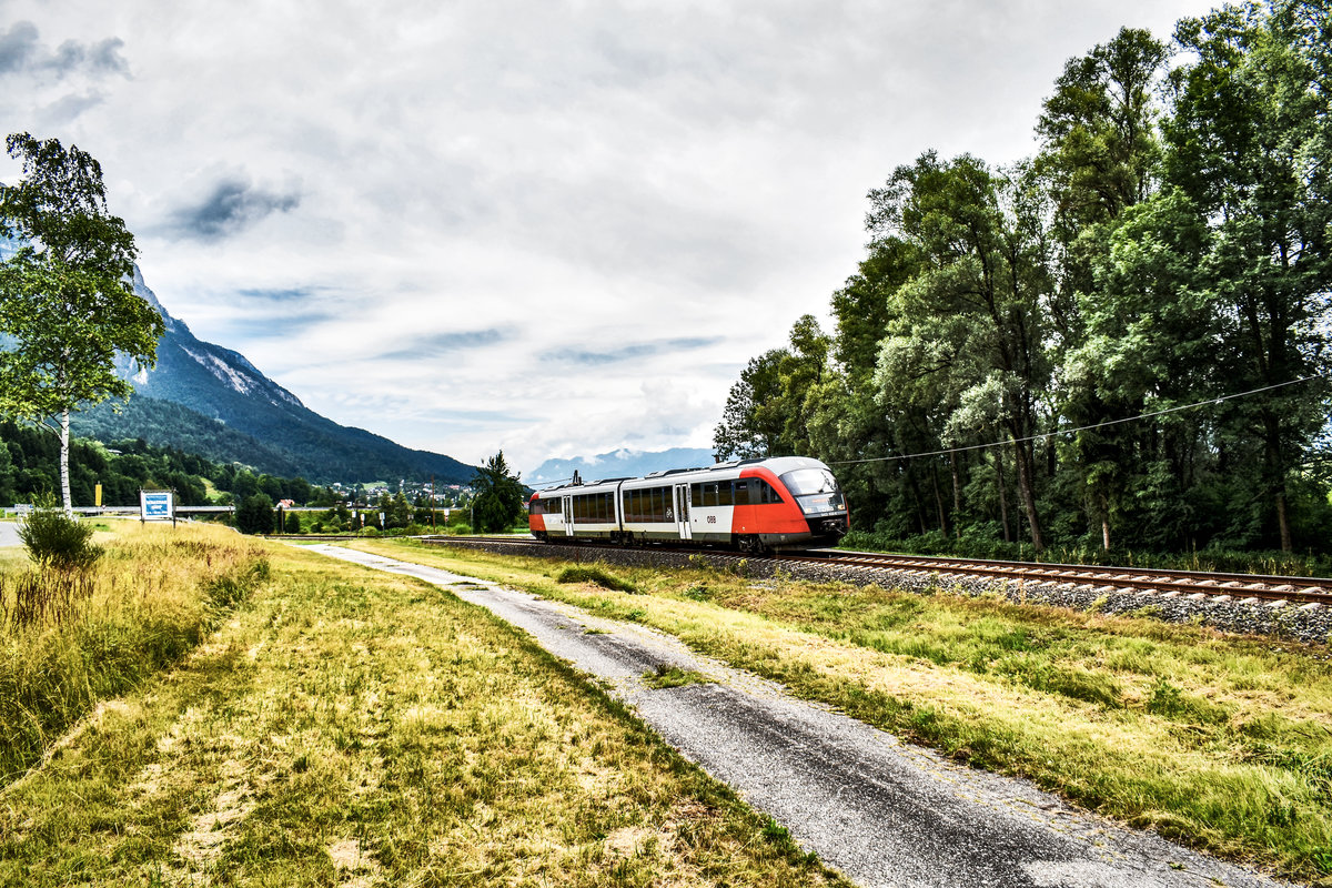 Ein ÖBB Talent-Triebwagen Reihe 4024 am 05.07.2018 in Brixlegg in Richtung Innsbruck.