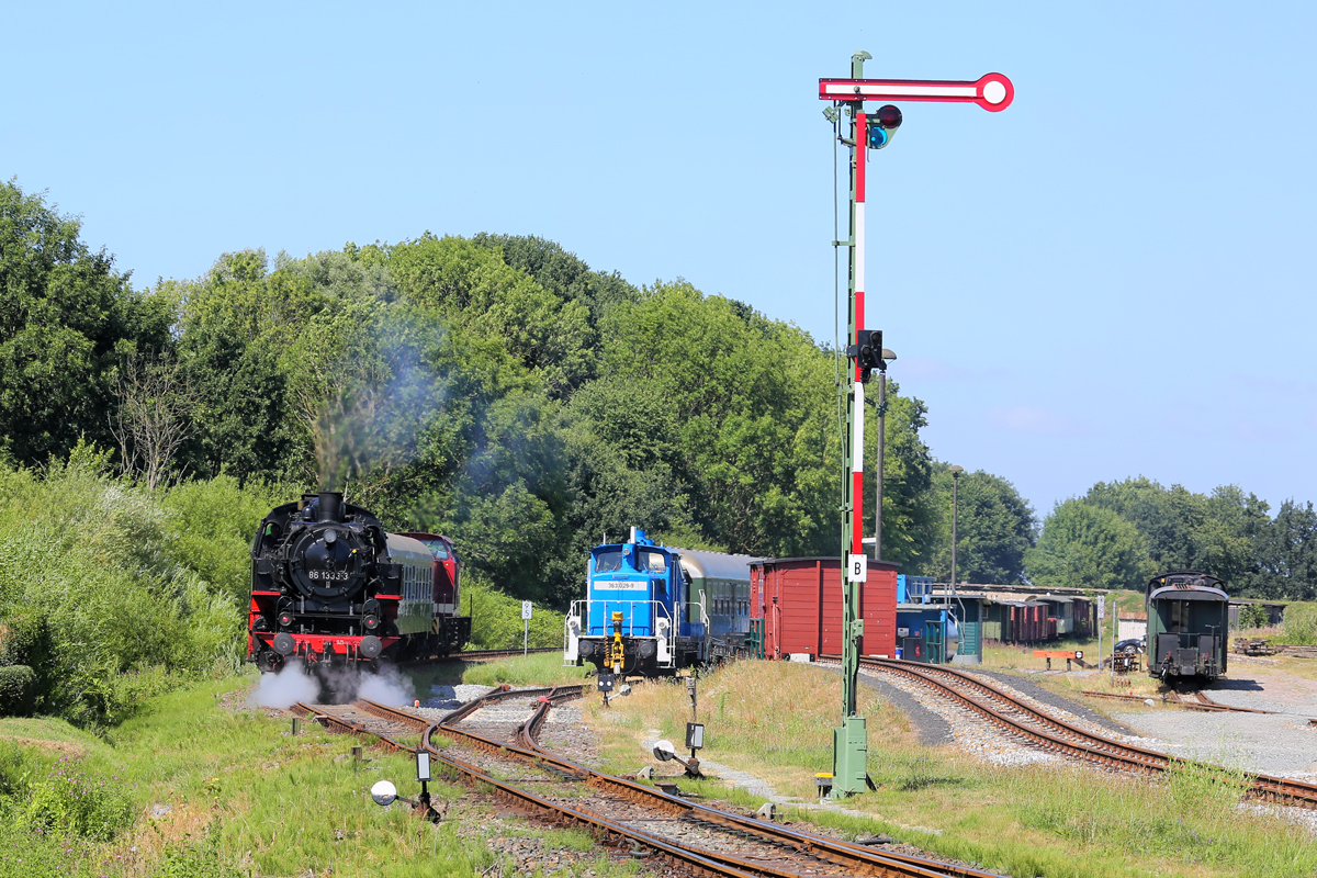 Durch Plandampf mit 86 1333 zwischen Bergen auf Rügen und Lauterbach Mole wurde der planmäßig fahrende VT 650 teilweise ersetzt. - 06.07.2018