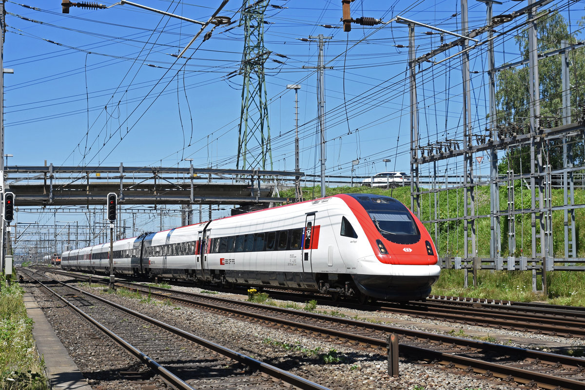 RABDe 500 001 "Jean Piaget" durchfährt den Bahnhof Muttenz. Die Aufnahme stammt vom 20.06.2018.