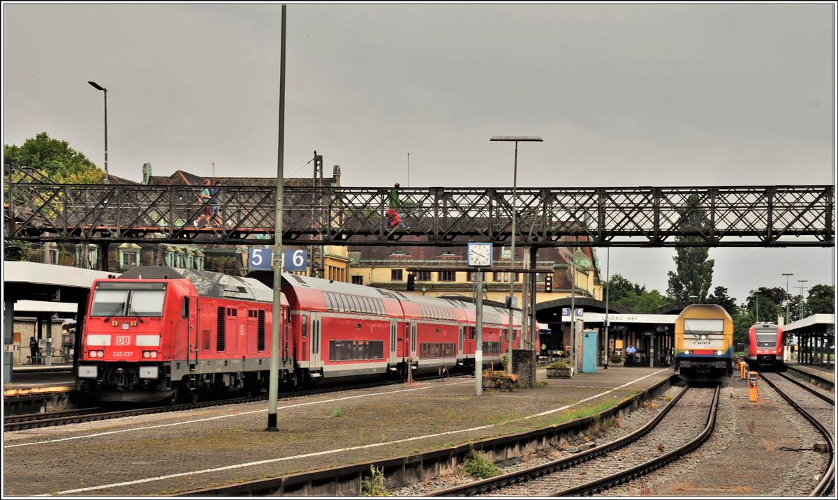 RE4228 nach Stuttgart mit 245 037 macht sich zur Fahrt in Lindau Hbf bereit. (05.07.2018)
