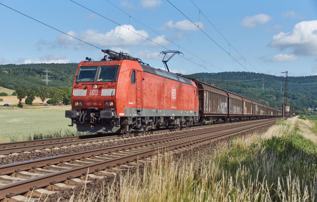 185 110-4 ist mit seinen Schiebewandzug bei Reilos unterwegs,gesehen am 20.06.2018.