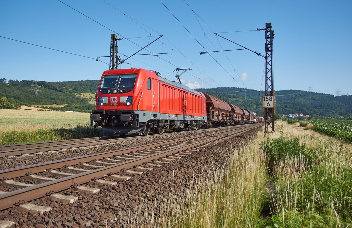 185 681 mit einem Kesselzug am 08.05.2018 bei Hagenacker.