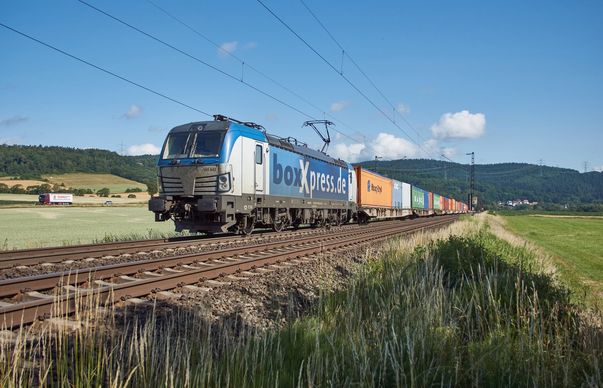 193 842-2 ist am 20.06.2018 bei Reilos mit einen Containerzug unteregs.