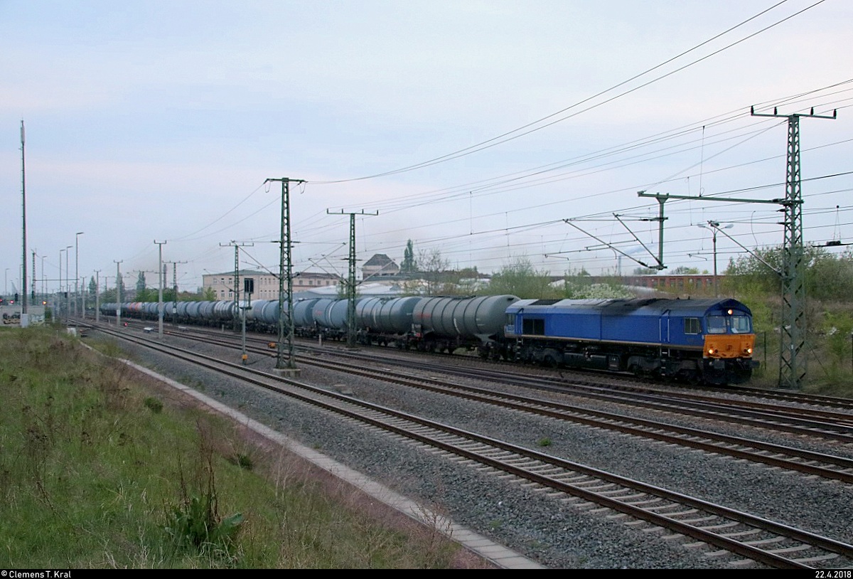 513-09 (BR 266 | Class 66) MRCE für CTL Logistics GmbH als Kesselzug fährt in Halle-Ammendorf auf der Bahnstrecke Halle–Bebra (KBS 580) Richtung Halle (Saale). [22.4.2018 | 19:56 Uhr]