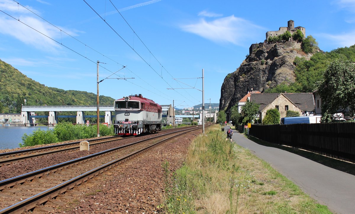 Es war so! 754 061-0 brachte am 07.07.18 den liegengebliebenen Zug durch Ústí nad Labem-Střekov.