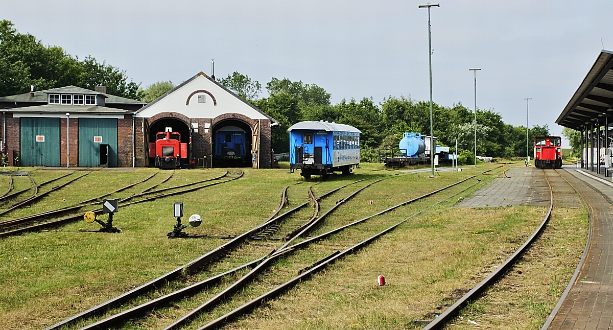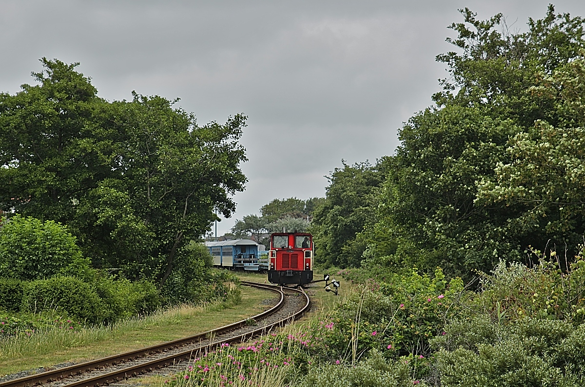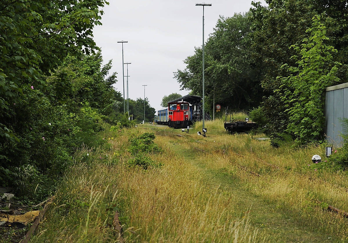 Am schicksalsträchtigem 27.06.2018 fährt 399 108-0 durch die Wangerooger Mittelaußengroden vom Anleger zum Inselbahnhof. Ungefähr zur gleichen Zeit wird im 4.372 km entfernten Kasan die Fußball-WM-Begegnung Deutschland - Südkorea angepfiffen...