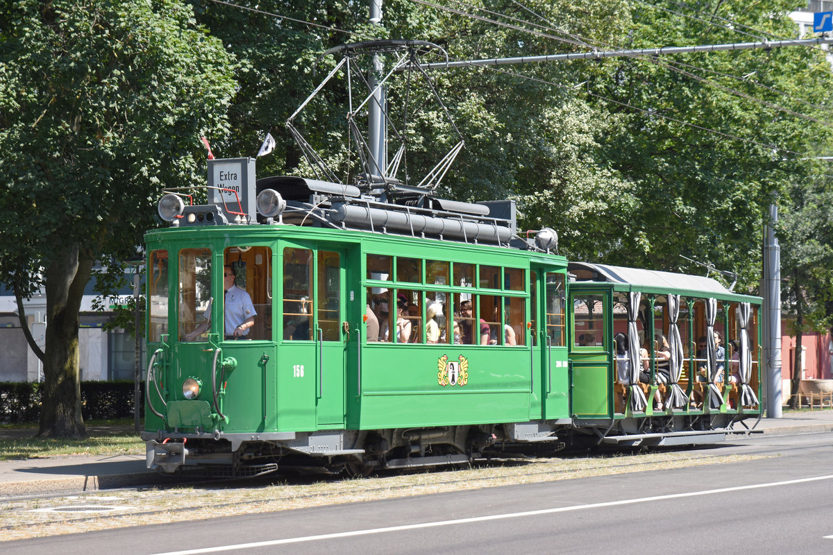 Be 6/8 Combino 301, auf der Linie 2, wartet in der Schlaufe beim Eglisee. Die Aufnahme stammt vom 02.07.2018.
