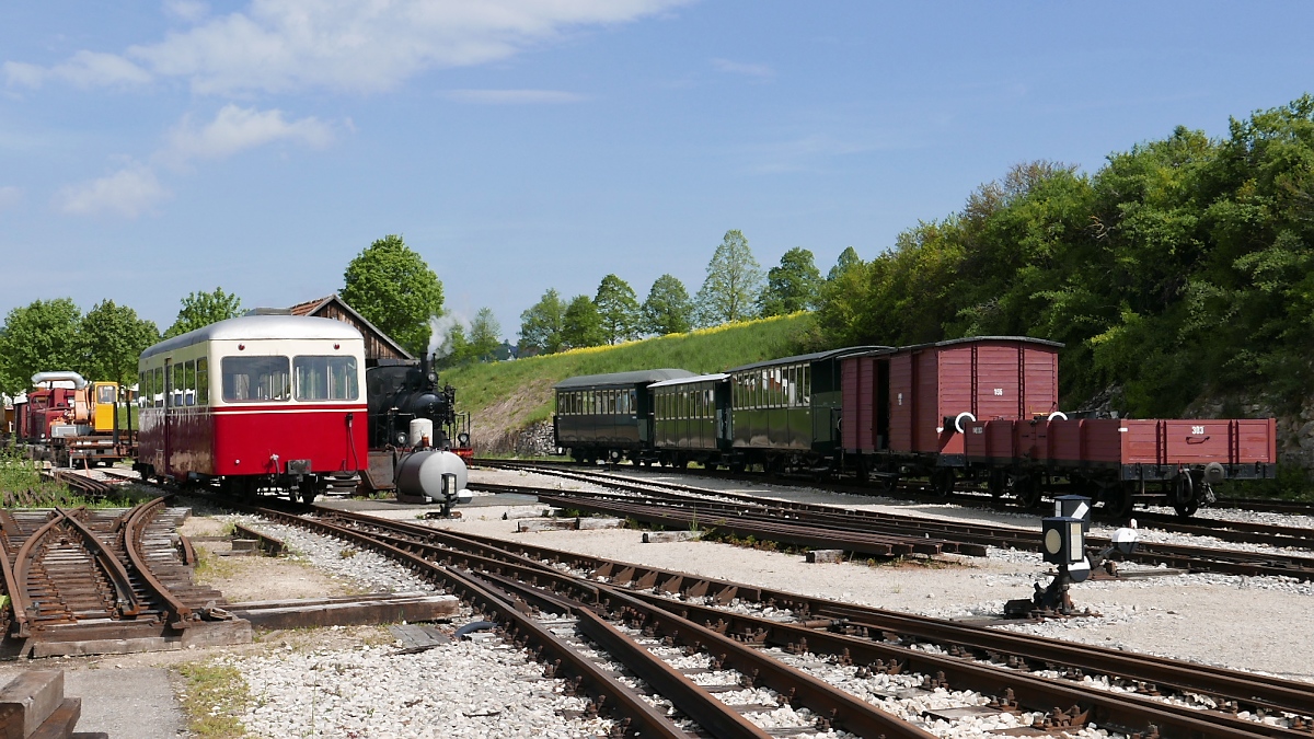 Wagenkomposition der Härtsfeld-Museumsbahn in Neresheim beim Museumstag am 14.5.2015