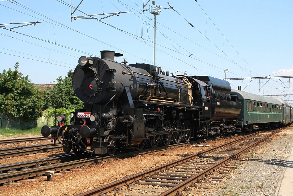 CSD 555 3008 am 17.Juni 2018 am Schluß des Sonderzuges von Bratislava Petrzalka nach Bratislava Vychod (via Bratislava Nove Mesto, Bratislava Vajnory, Bernolakovo, Senec, Bratislava Raca) bei der Einfahrt in Bratislava Raca.