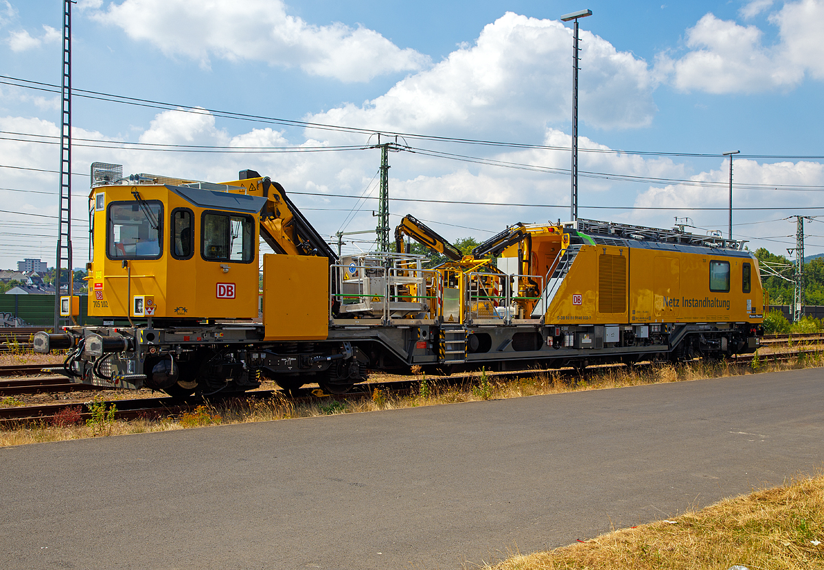 Das Tunnelinspektionsfahrzeug TIF 705 102 (Schweres Nebenfahrzeug Nr.99 80 9 146 002-7 D-DB) ist am 07.07.2018 beim ICE-Bahnhof Montabaur abgestellt.