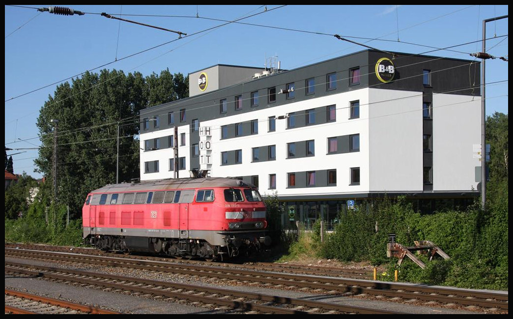 DB 218272 stand am 2.7.2018 um 18.55 Uhr im oberen Teil des HBF Osnabrück vor dem B&B Hotel.