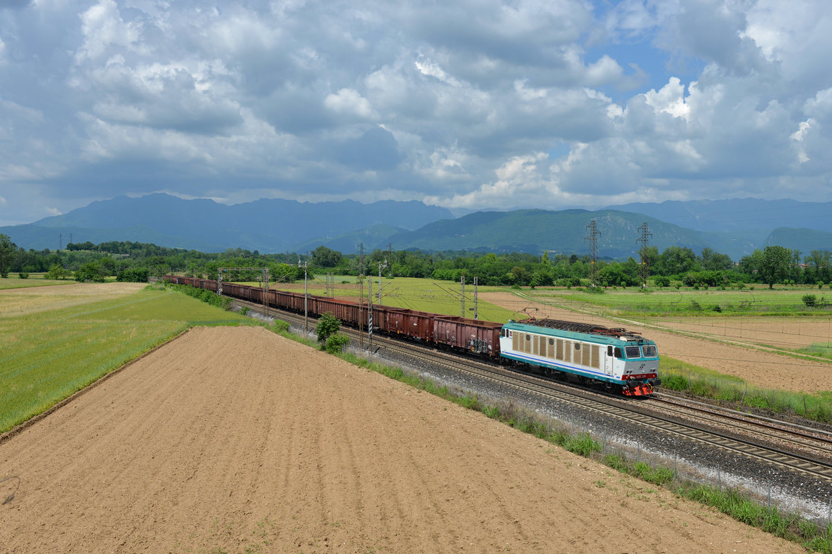 E 633 234 mit einem Schrottzug am 25.05.2018 bei Tricesimo.